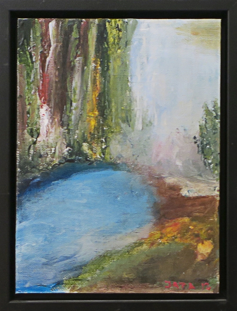 Kunstmaler Jata Stojanovic, Engesvang ved Silkeborg. Malerier med titel, størrelse og pris.