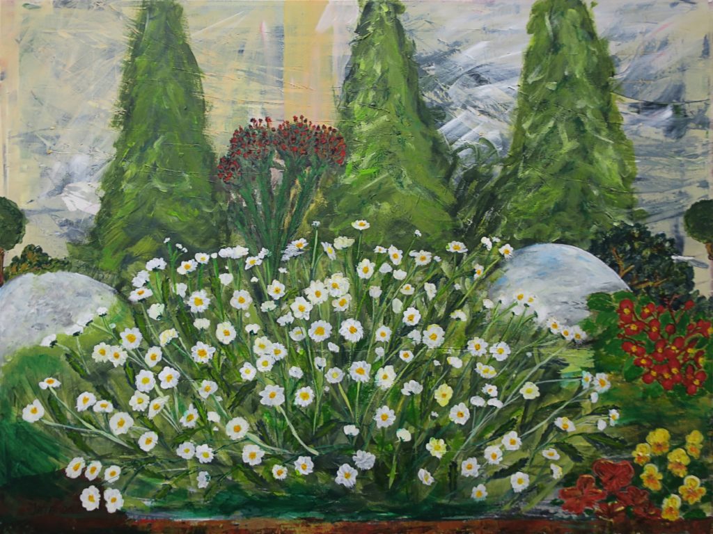 Kunstmaler Jata Stojanovic, Engesvang ved Silkeborg. Malerier med titel, størrelse og pris.