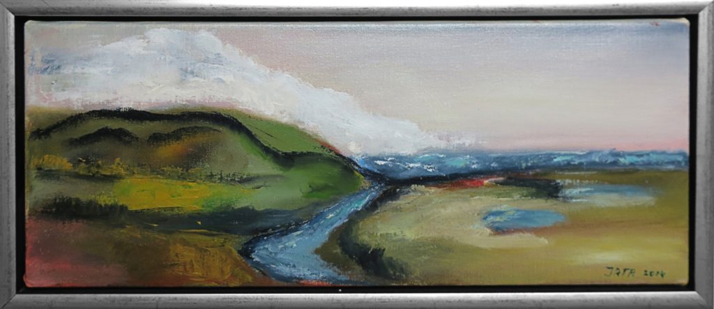 Kunstmaler Jata Stojanovic, Engesvang ved Silkeborg. Malerier med titel, størrelse og pris.